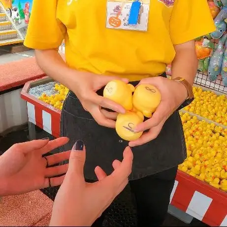「欸欸妳看!」朋友示意我望向撈鴨子攤位的娃娃。​