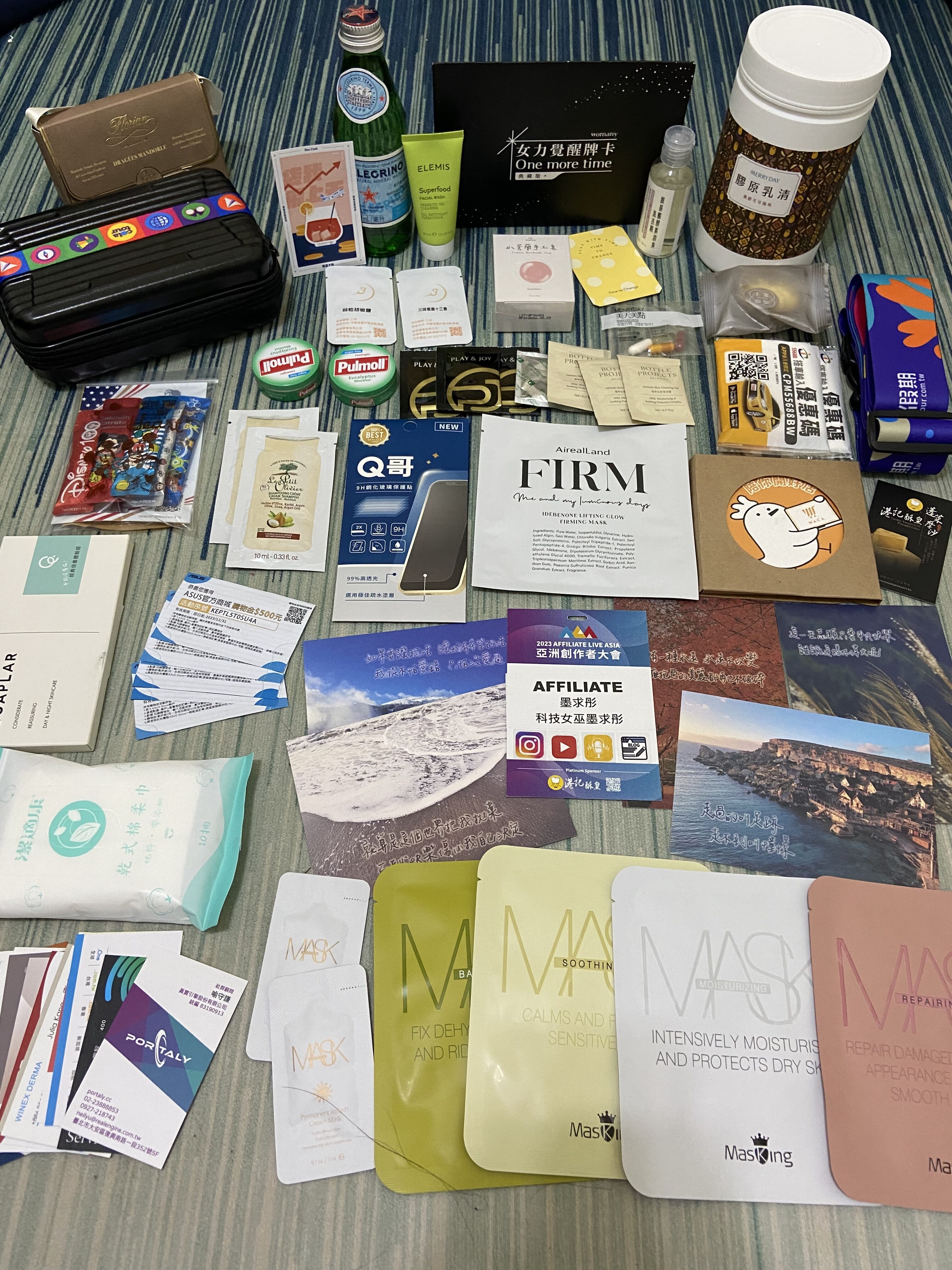整個活動結束後,我很慶幸自己當天在活動開始前後就抵達,也才能跟許多廠商接洽、交換名片,並獲得這麼多的體驗商品: