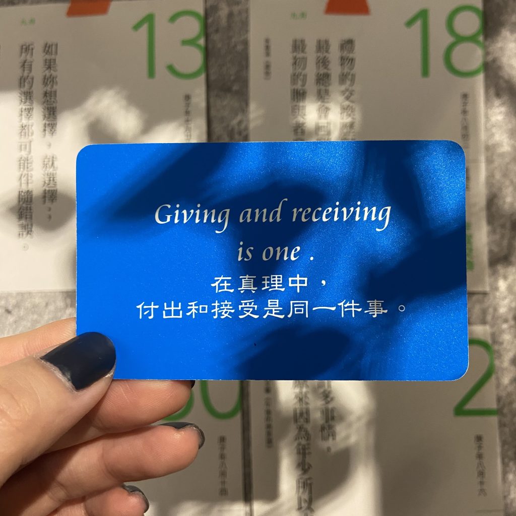 所幸好像沒有人要跟我搶,賣家也很迅速的回覆我,並且在今天晚上約面交,拿到書的時候,還有跟賣家稍微聊了天,才發現我們其實有共同朋友。當你活出自己,表達真實的自我,所需要的一切豐盛就會帶你找到通往的道路,你將擁有需要的一切。