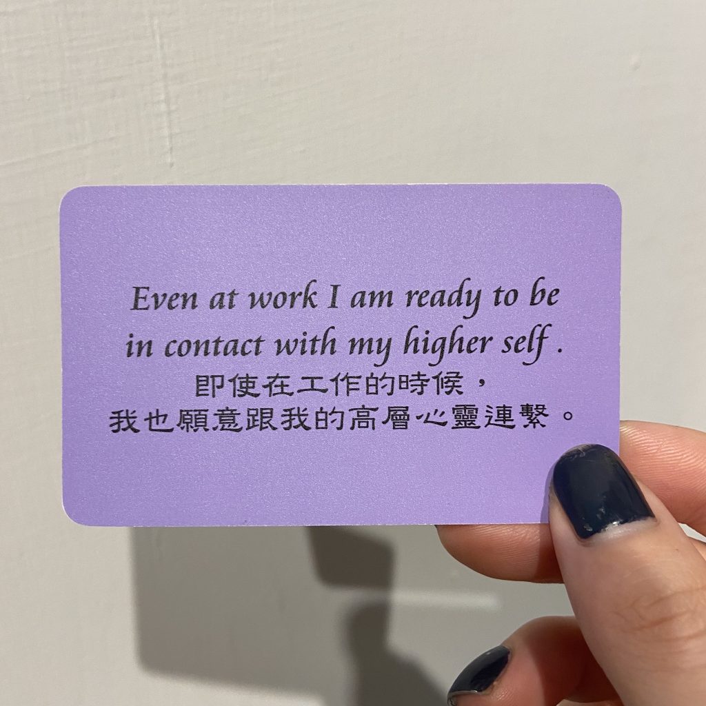 我們很常從外界去接收訊息,例如:新聞、媒體、別人傳給你的訊息、別人告訴你的訊息,卻沒想過其實很多的訊息,我們可以自己從內心發想跟著手。而這張彩虹卡提供我們另外一種對於工作(日常)的看法:我知道我所面對的一切事物,都是我的高我安排我經歷的。