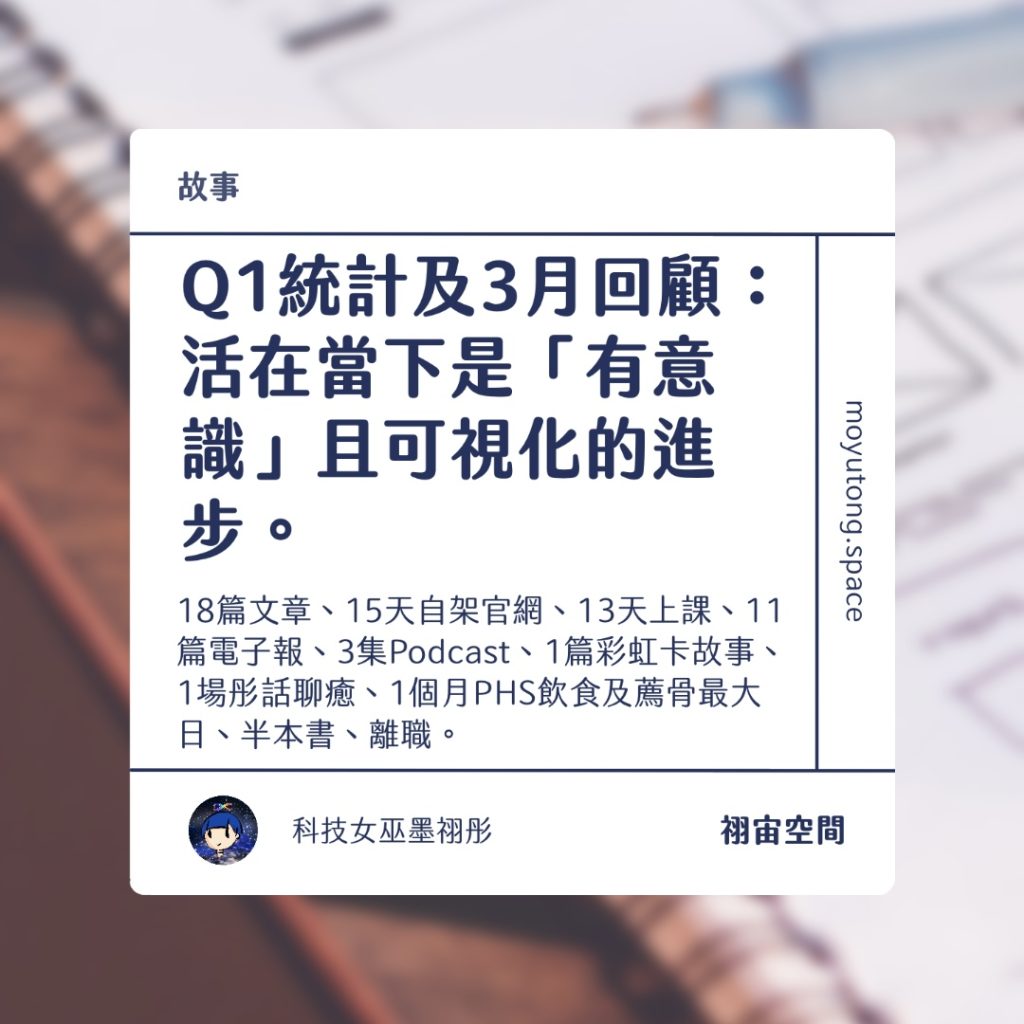 Q1統計及3月回顧:活在當下是「有意識」且可視化的進步