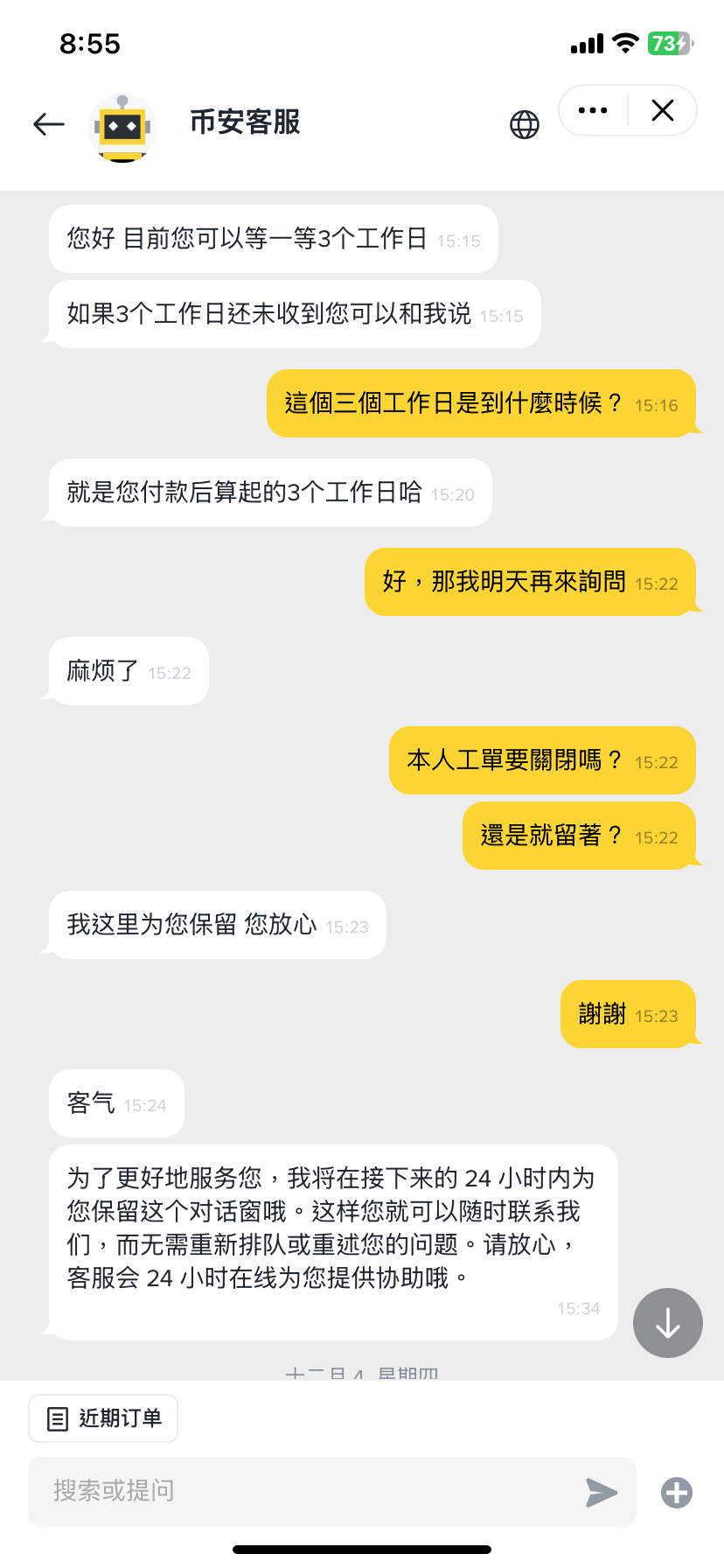 4、等候幣安客服查詢