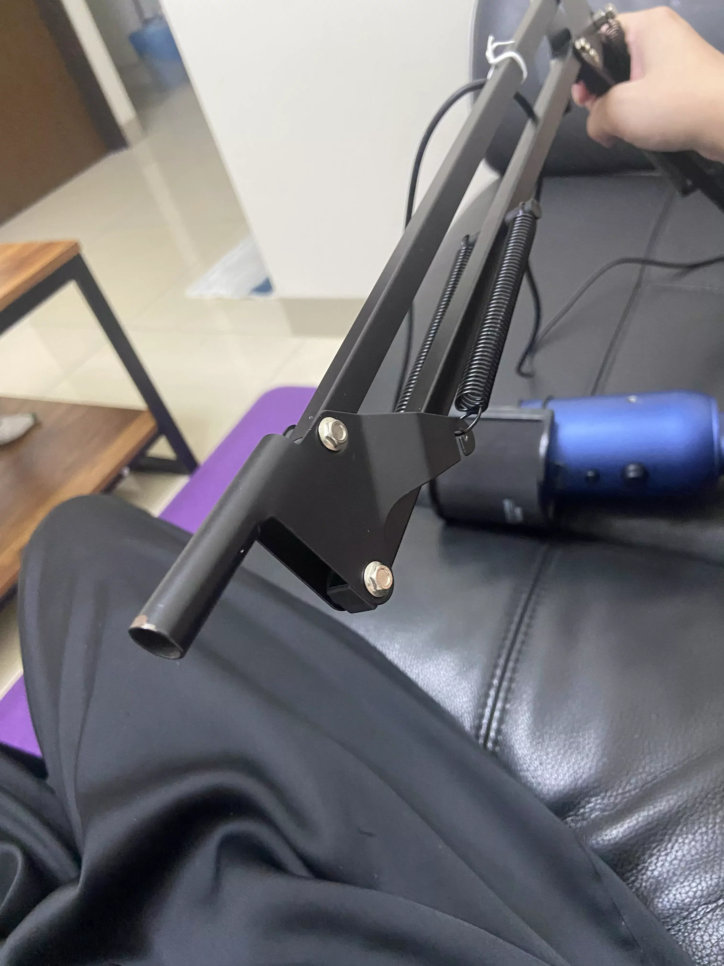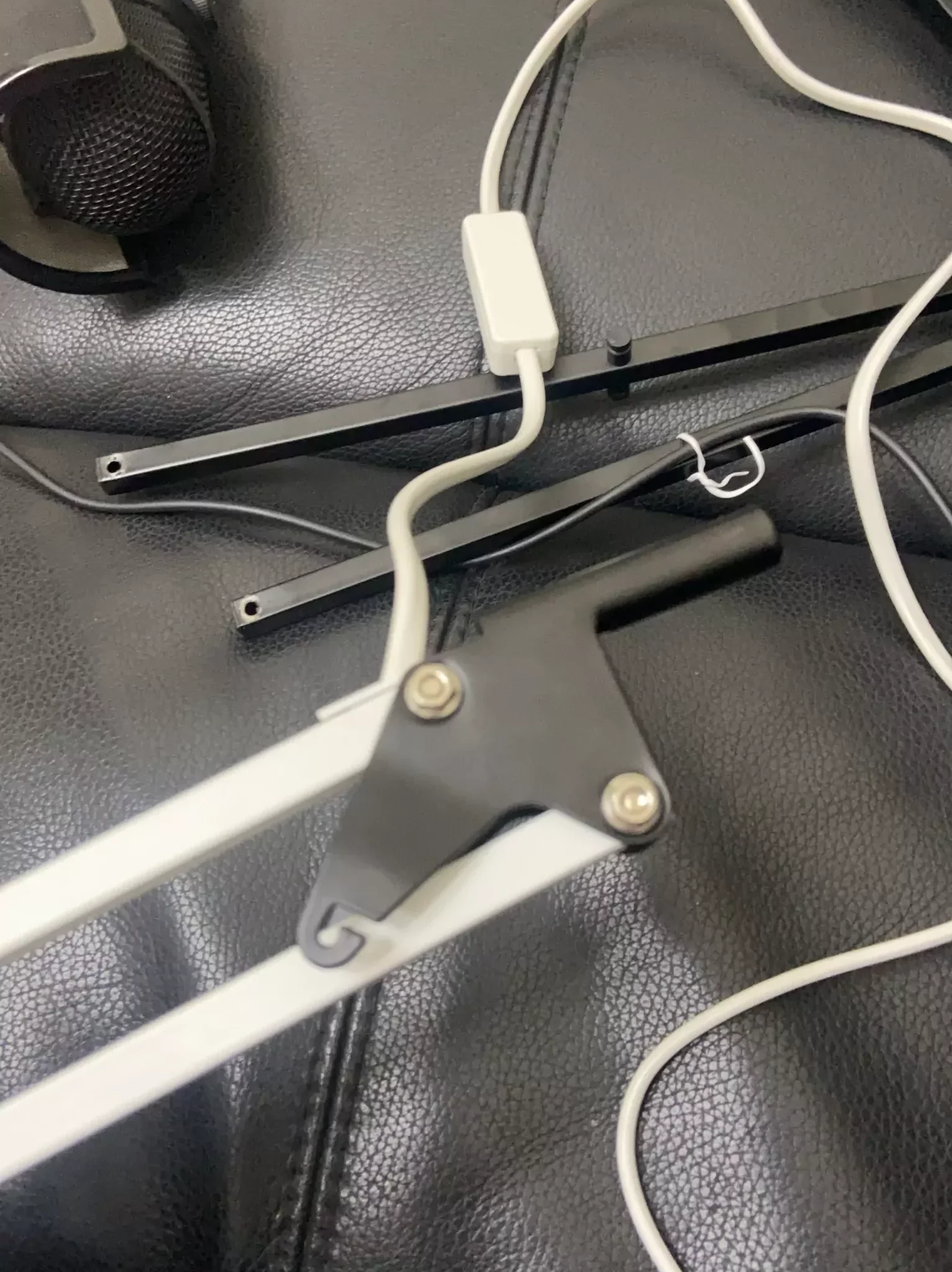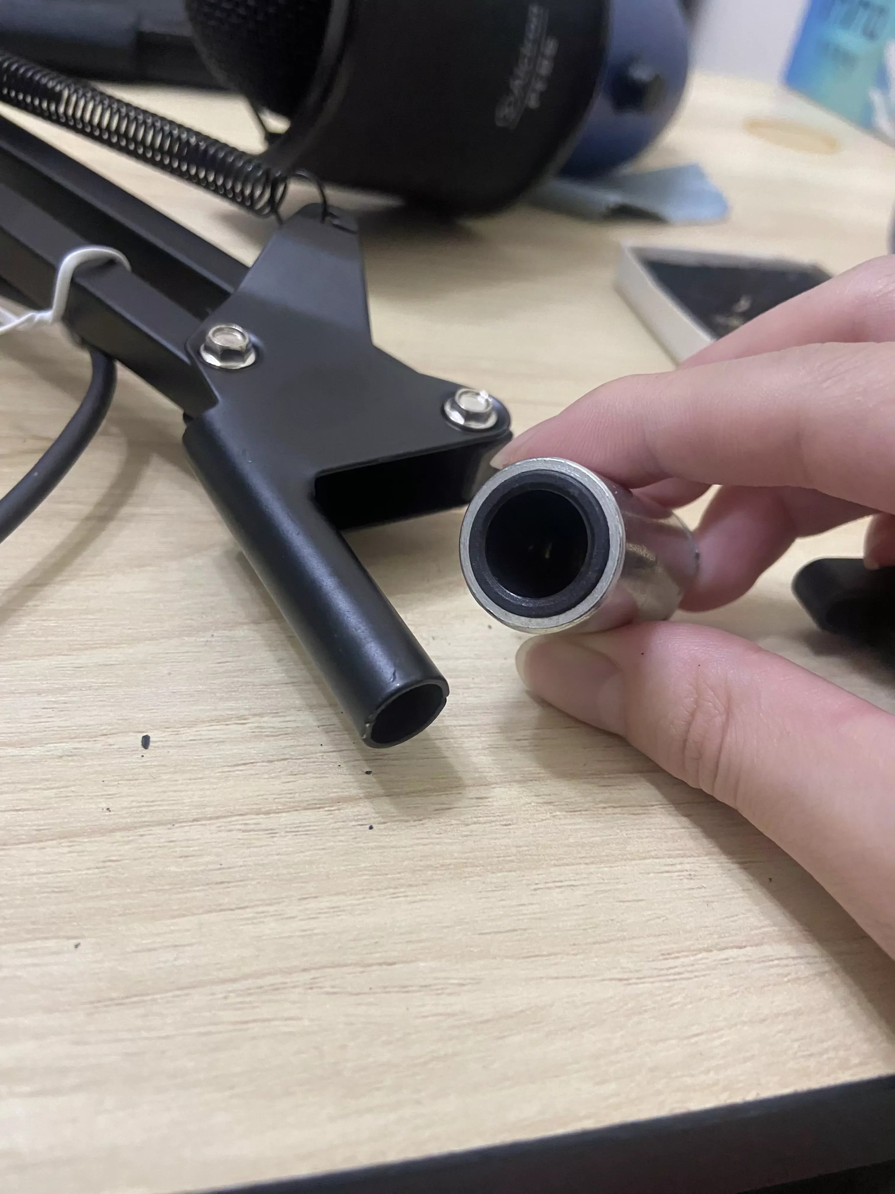 而當我看到桌上的麥克風懸臂支架時,頓時想到新的解決方法:燈桿抽換。