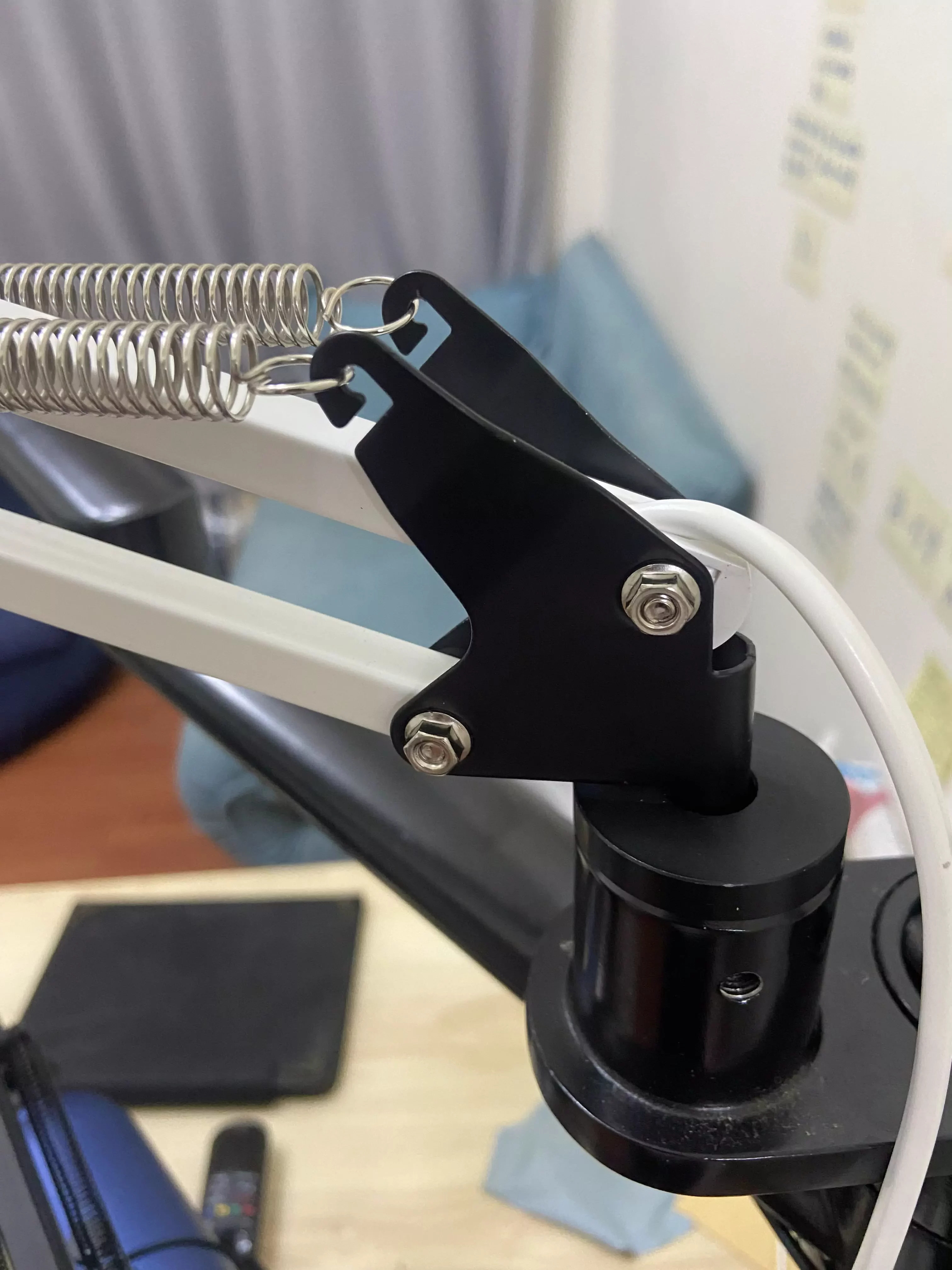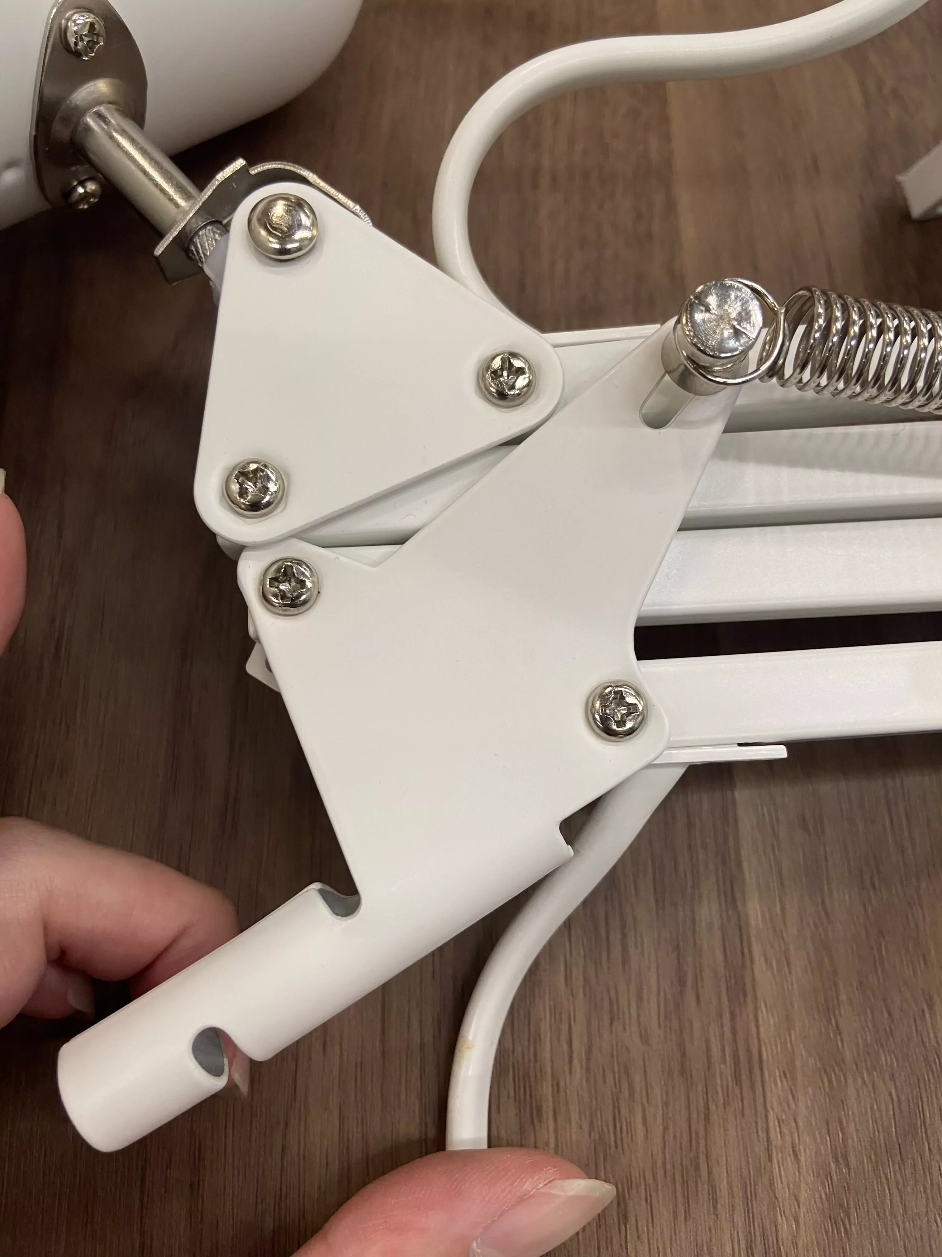 經測量支架臂長後發現它符合「能放在工作範圍正上方」的需求,等於我只要解決燈桿直徑的問題,就不用買燈座了。