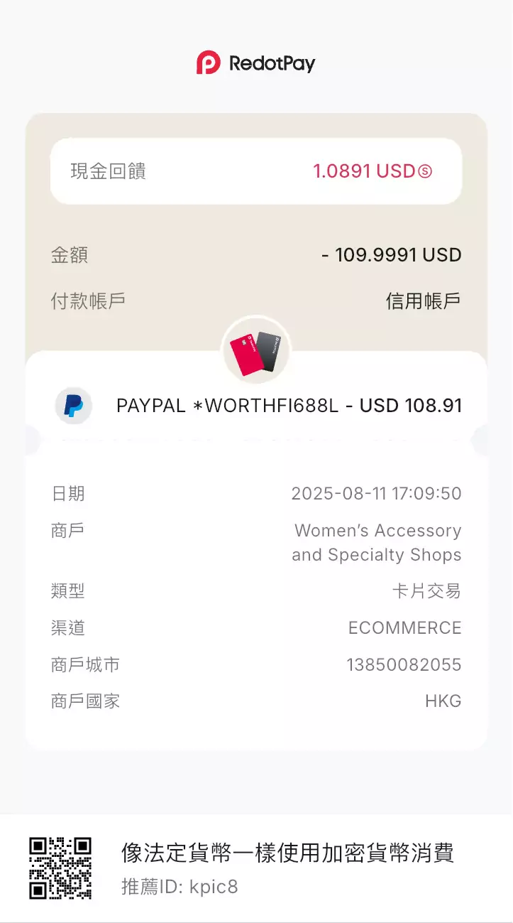 這時就需要一張「RedotPay加密貨幣信用卡」!